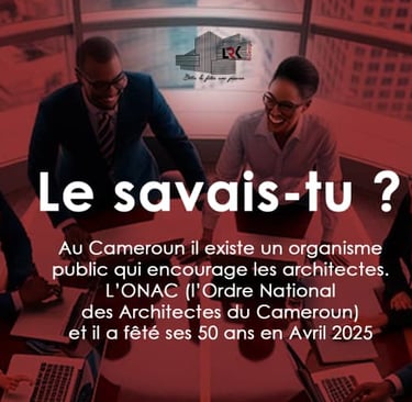 L'ONAC (Ordre National des Architectes du Cameroun) veille depuis plus de 50 ans à valoriser le talent de nos architectes et à façonner le visage de nos villes !